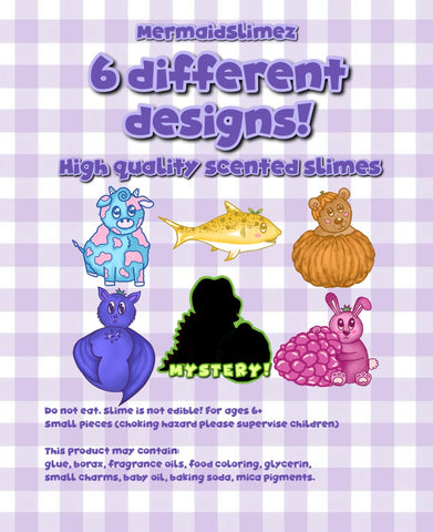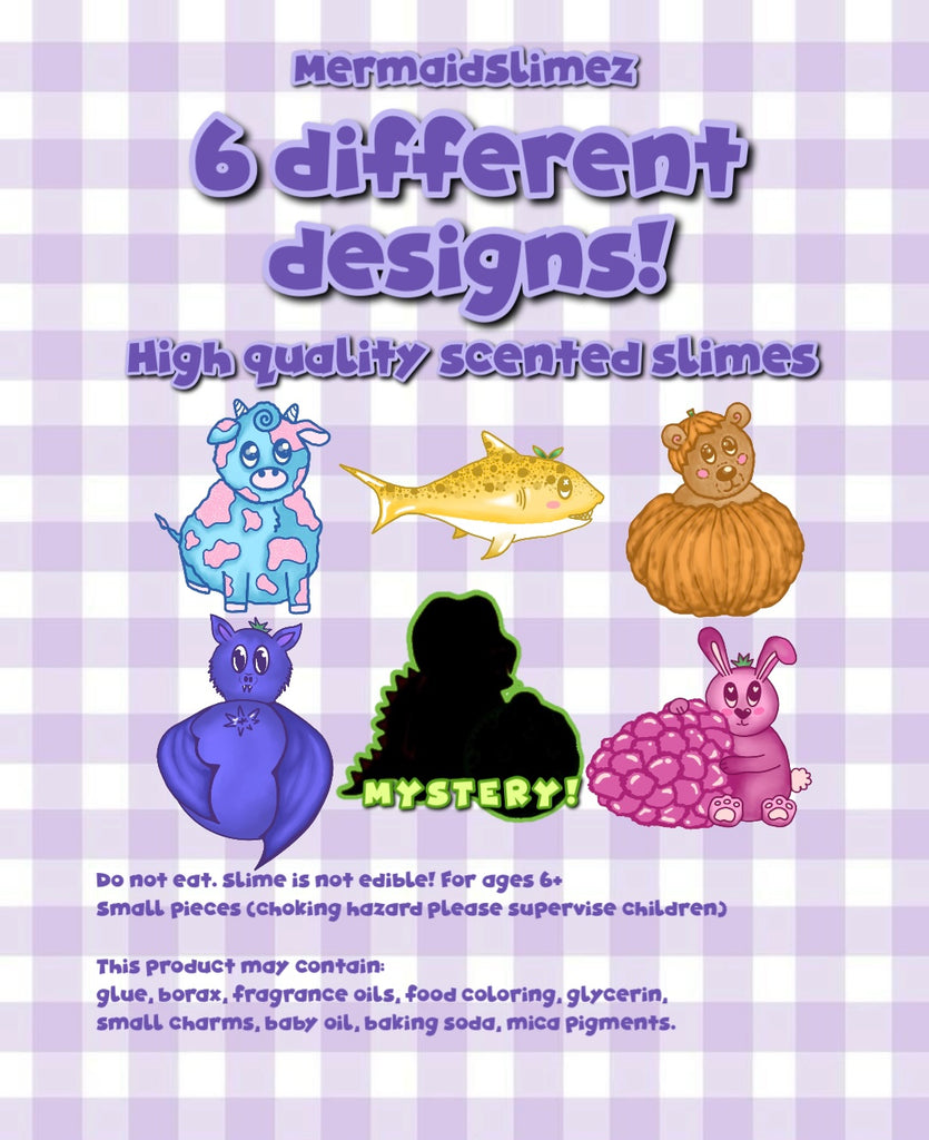 All blind bags are chosen at random and if ordered twice you may receive two of the same slime so please keep this in mind! However if you place an order with multiple blind bags you will not receive two of the same slime we will make sure to chose separate characters within the same order.