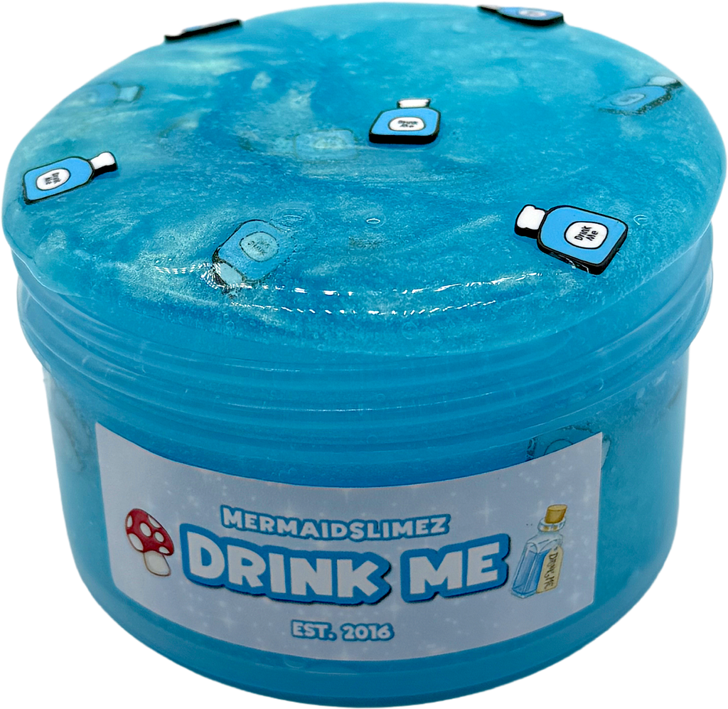Drink Me is inspired by the little blue drink Alice has to drink to shrink down to size to fit through the little door to wonderland! While this slime is unscented it’s perfect for those with sensitivity to fragrance and has a holdable coated clear texture with a gorgeous and I mean stunning gold blue pigment!