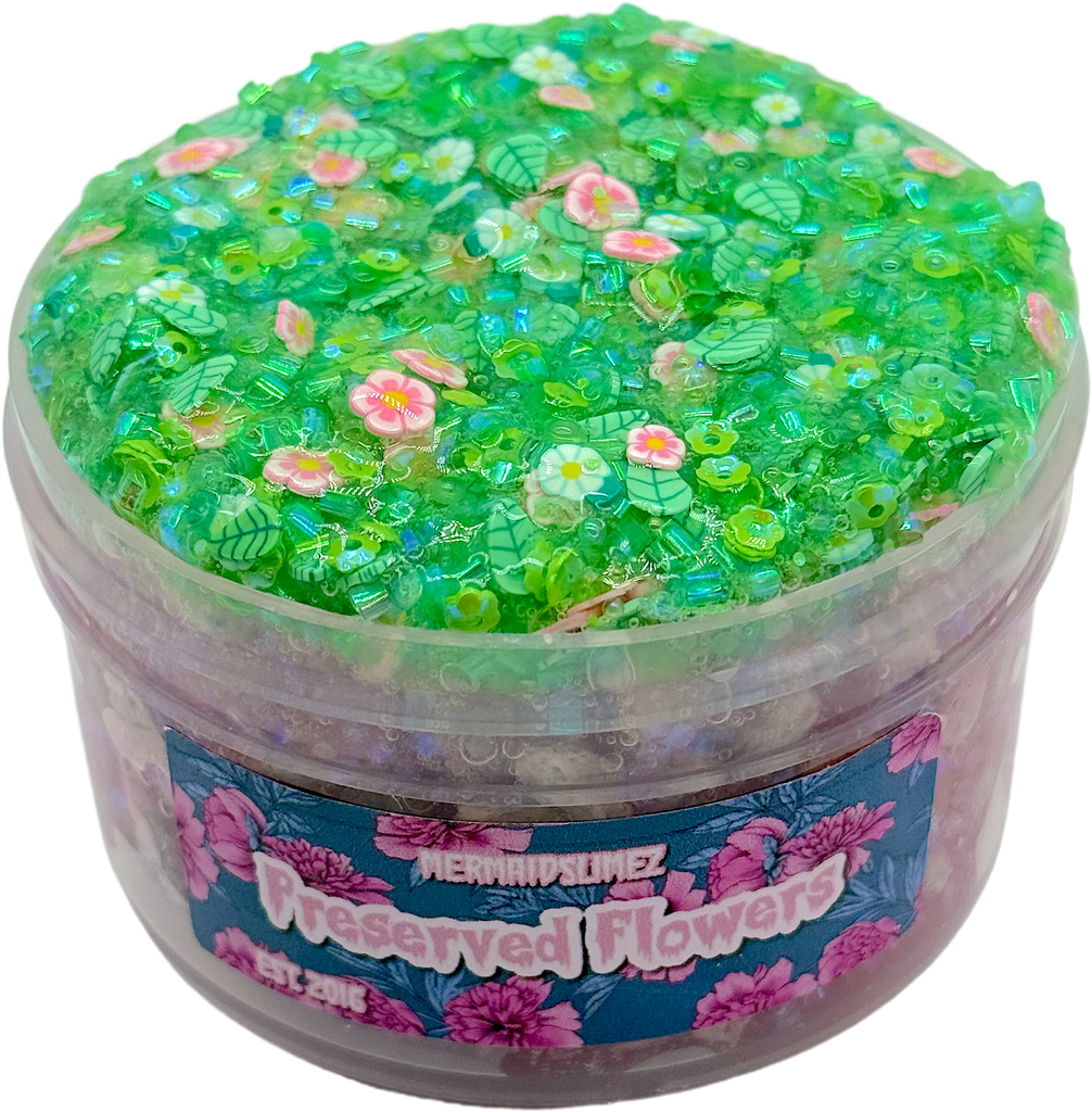 A new rendition of an old favorite! Preserved Flowers is scented with a beautifully floral rose water fragrance! The base is a baby pink clear pumice stone slime that creates some of my personal favorite asmr sounds! We added bungsu beads for an extra crunch factor and a crunchy sequin, sprinkle, and glitter bomb topper! Once mixed this slime makes some of the best crunchy ASMR ever!