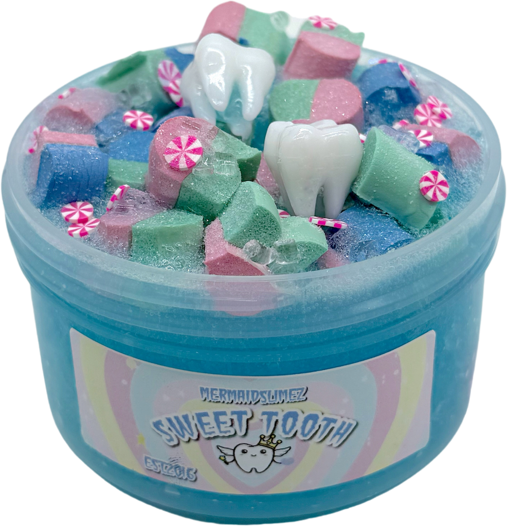 Sweet Tooth is a new addition to our Oddities & Curiosities Collection! Our crunchy sugar scrub slime with Java chips makes for endless bubble pops and crisp asmr! Filled with candy sprinkles! Scented like yummy gummy and comes with a bag of iridescent glitter and tooth charms!