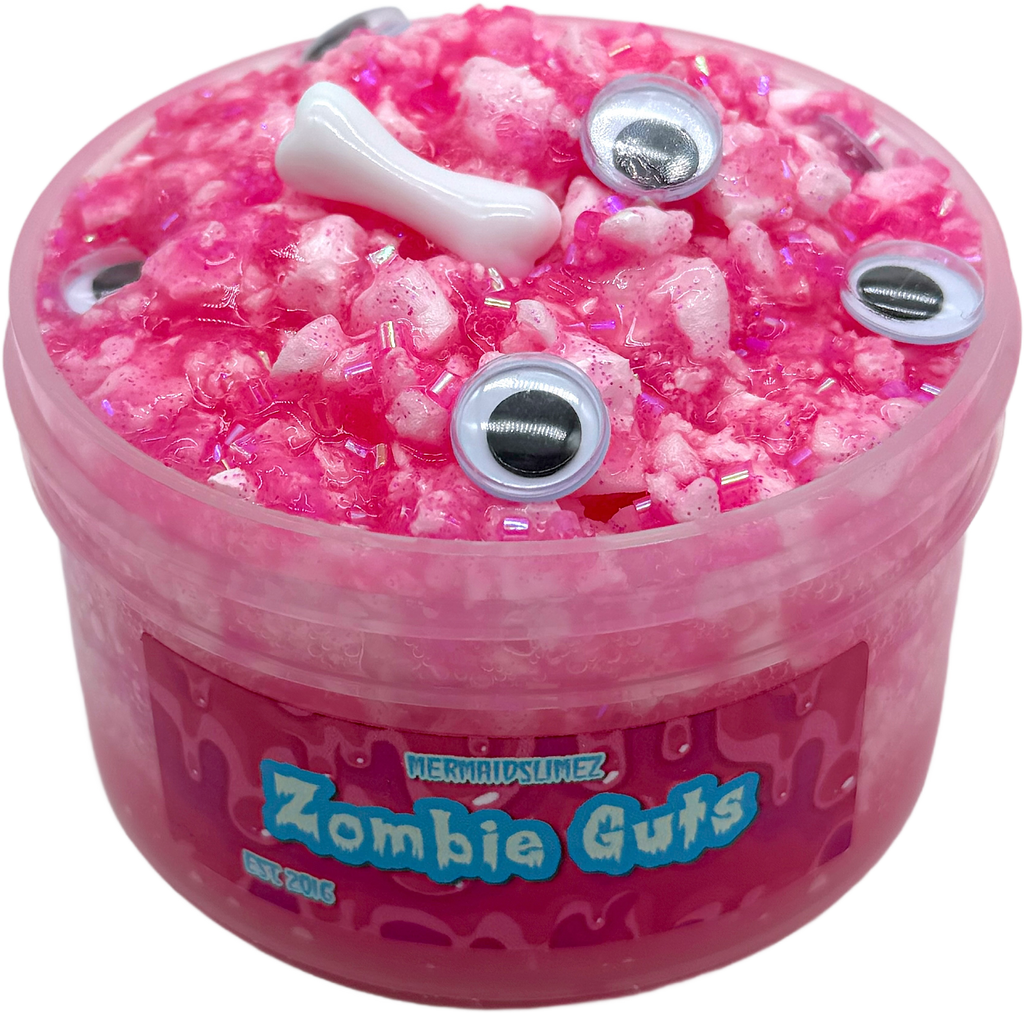 Zombie Guts has a crispy texture from the Bingsu beads mixed with a poppy squishy texture from the chewed up bbg element which makes for the dreamiest crisp hybrid combo for my crunchy slime lovers with sensitive hands this is the one for you! It comes with this adorable bone charm that really adds to the overall concept of this amazing slime!